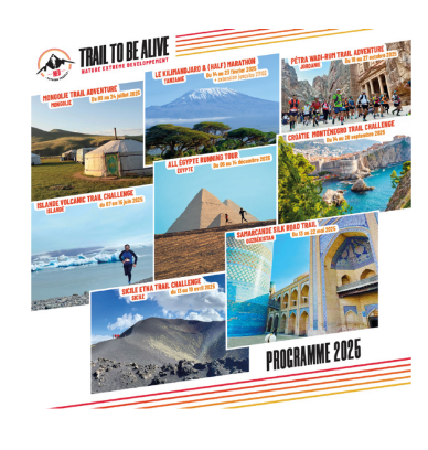 TRAIL to be ALIVE , ce sont des Trails et Randonnées par étapes à l’étranger dans des paysages extraordinaires. Associant culture et convivialité, ces voyages sportifs sont organisés depuis 1995 (anciennement sous la dénomination Nature Extrême Développement (NED), au statut d’agence de voyage, pour des voyages tout compris en sécurité.